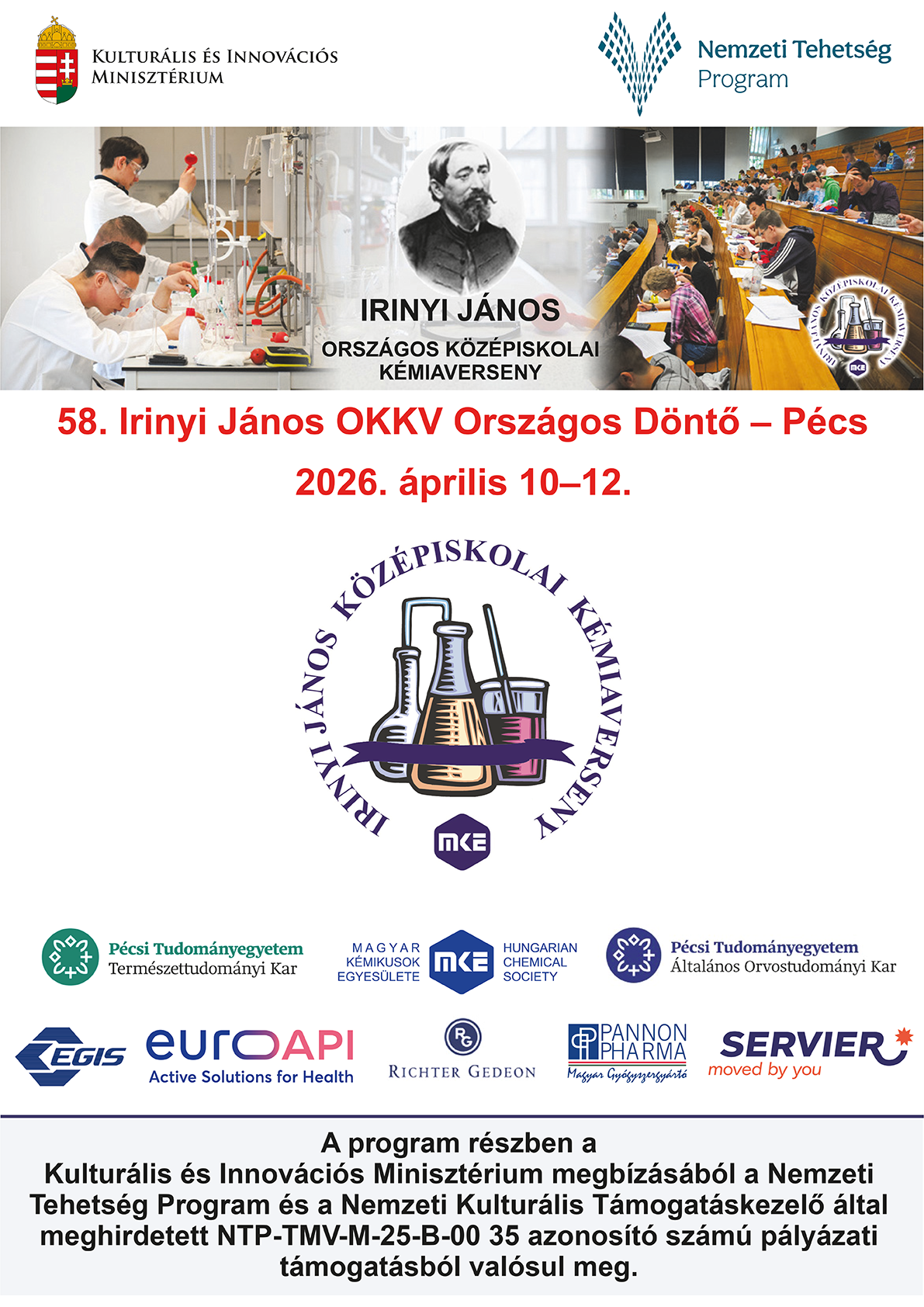 58. Irinyi János Országos Középiskolai Kémiaverseny Döntő 2026. április 10-12. Pécs